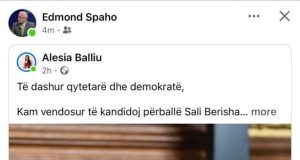 Ish-deputeti i PD, Edmond Spaho suporton kandidaturën e Alesia Balliut